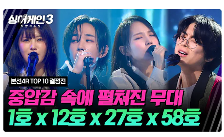 JTBC 예능 프로그램 '싱어게인 3'의 4라운드 TOP10 결정전이 시작됐습니다. 1조에서는 16호 가수와 46호 가수가, 2조에서는 49호 가수와 66호 가수가 각각 TOP10에 진출했습니다. 팽팽한 신경전이 있었던