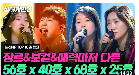 12월 21일 목요일에는 싱어게인3 3조, 4조의 경연이 펼쳐졌습니다. 최근 인기를 더해가는 가운데 예상밖의 결과에 놀라움을 금치 못하는 상황이 벌어졌습니다. 이번에는 4조부터 알려드리도록 하겠습니다.