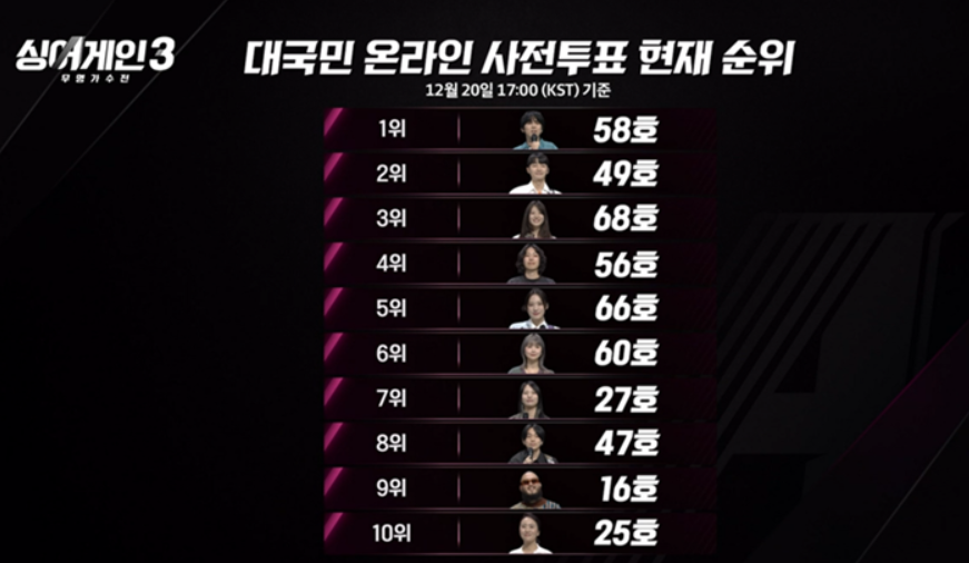 싱어게인3 49호, 68호, 16호, 66호 결승진출 TOP10 사전투표 1위는?